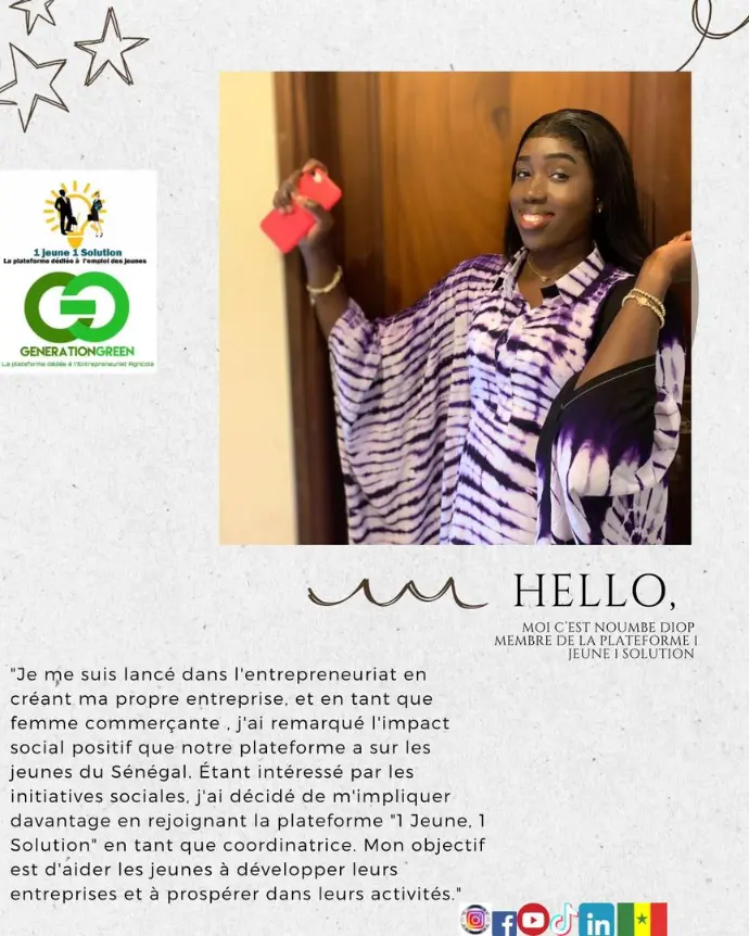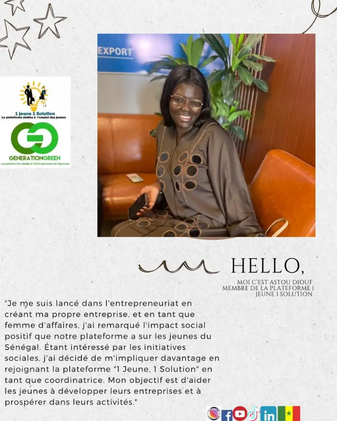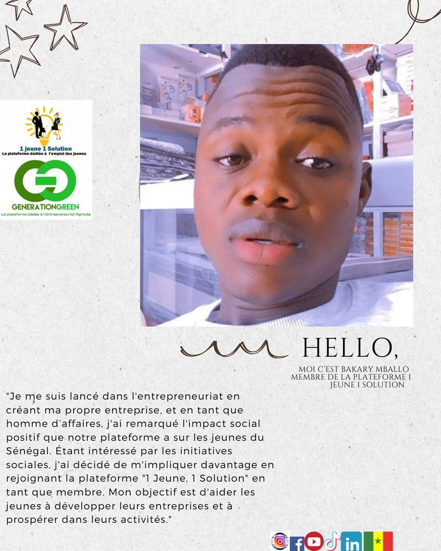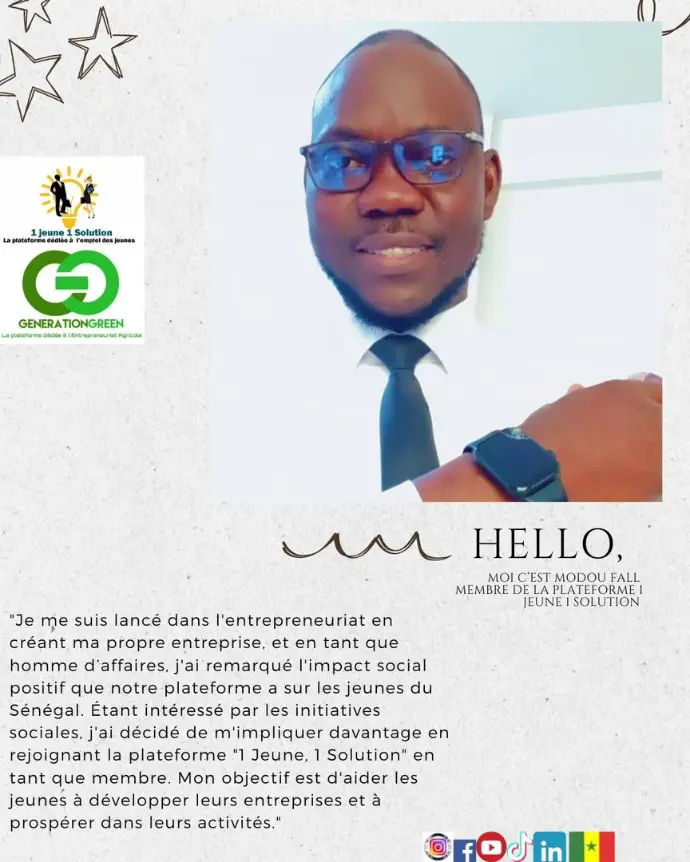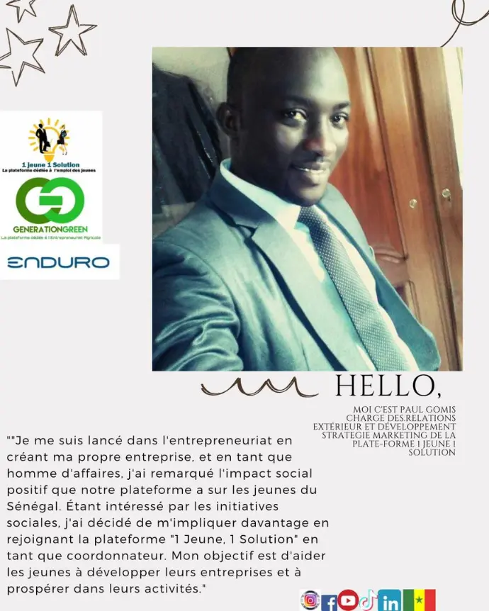 Secrétaire général de la plateforme 1 jeune 1 solution Dakar et chargé d’affaires