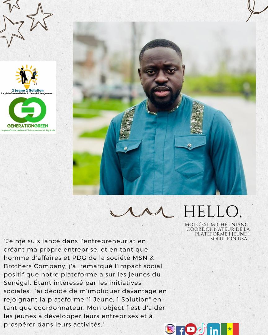 Secrétaire général de la plateforme 1 jeune 1 solution Dakar et chargé d’affaires